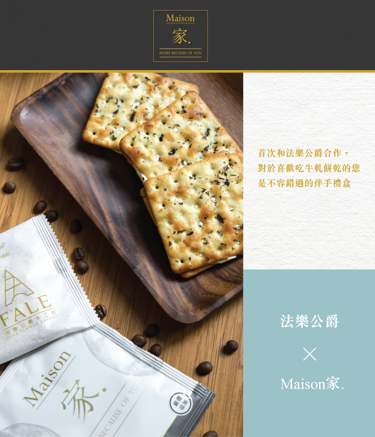 家 首次和團購美食法樂公爵合作,對於喜歡吃牛軋餅乾的您是不容錯過的伴手禮盒